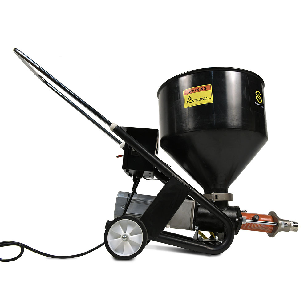 Schtaer SPA 75 DP – аппарат для нанесения шпаклевки. Установка обеспечивает мягкое и равномерное покрытие с помощью плавной регулировки объема подаваемого материала. Материал покрытия подается из бака. Спиральный конвейер подает материал покрытия на эксцентриковый шнековый насос. При всасывании материал покрытия поступает в эксцентриковый шнековый насос. Этот насос создает давление, необходимое для транспортировки строительного раствора через шланг. Сжатый воздух, требуемый для атомизации, подается в распыляющую насадку. Установку для распыления строительного раствора можно включать и выключать с помощью электрического переключателя.