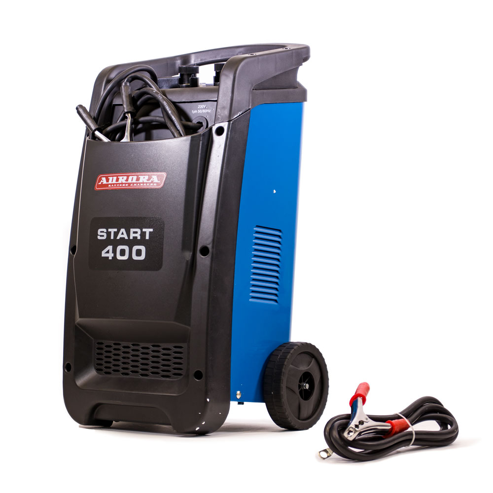 AURORA START 400 – это профессиональное пуско-зарядное устройство, которое служит для зарядки аккумуляторов со свободным электролитом напряжением 12/24 В, а также для быстрого пуска всех типов легковых автомобилей, микроавтобусов, легких грузовых автомобилей и мотоциклов.