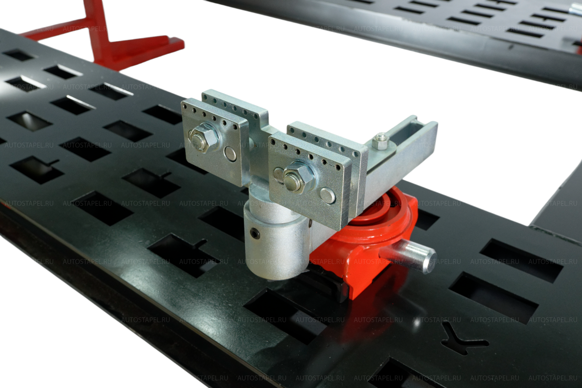 - Уникальная, опорно-поворотная система фиксации обеспечивает быстрое и надёжное закрепление автомобиля к платформе с помощью клина