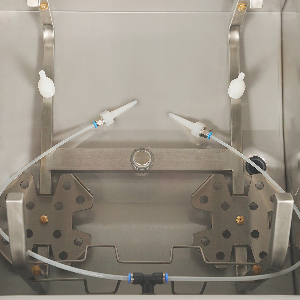 Возможность одновременной промывки двух распылителей упрощает работу при постоянной загрузке.