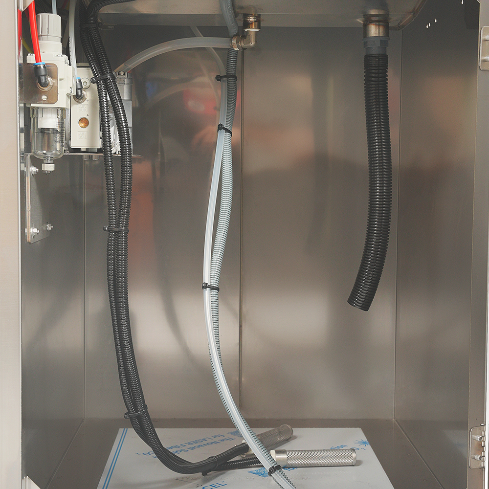 Установка требует подачи сжатого воздуха и обязательного подключения вытяжной системы.