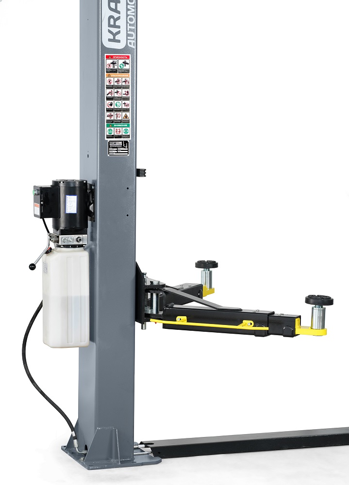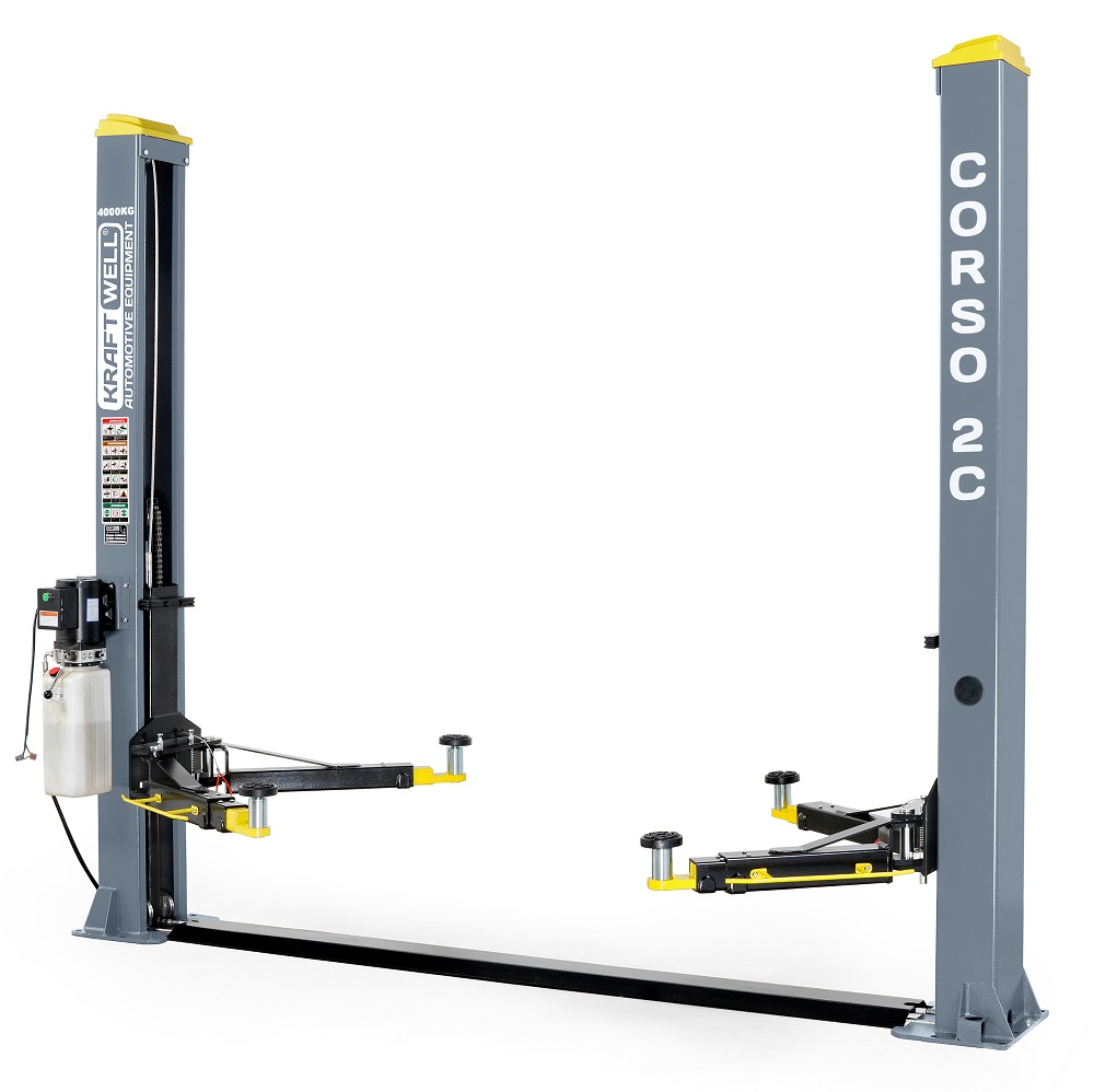 - Подъемник двухстоечный KraftWell CORSO 2C/220, серый, г/п 4000 кг, 220 В, нижняя синхронизация, высота подъема 1900 мм