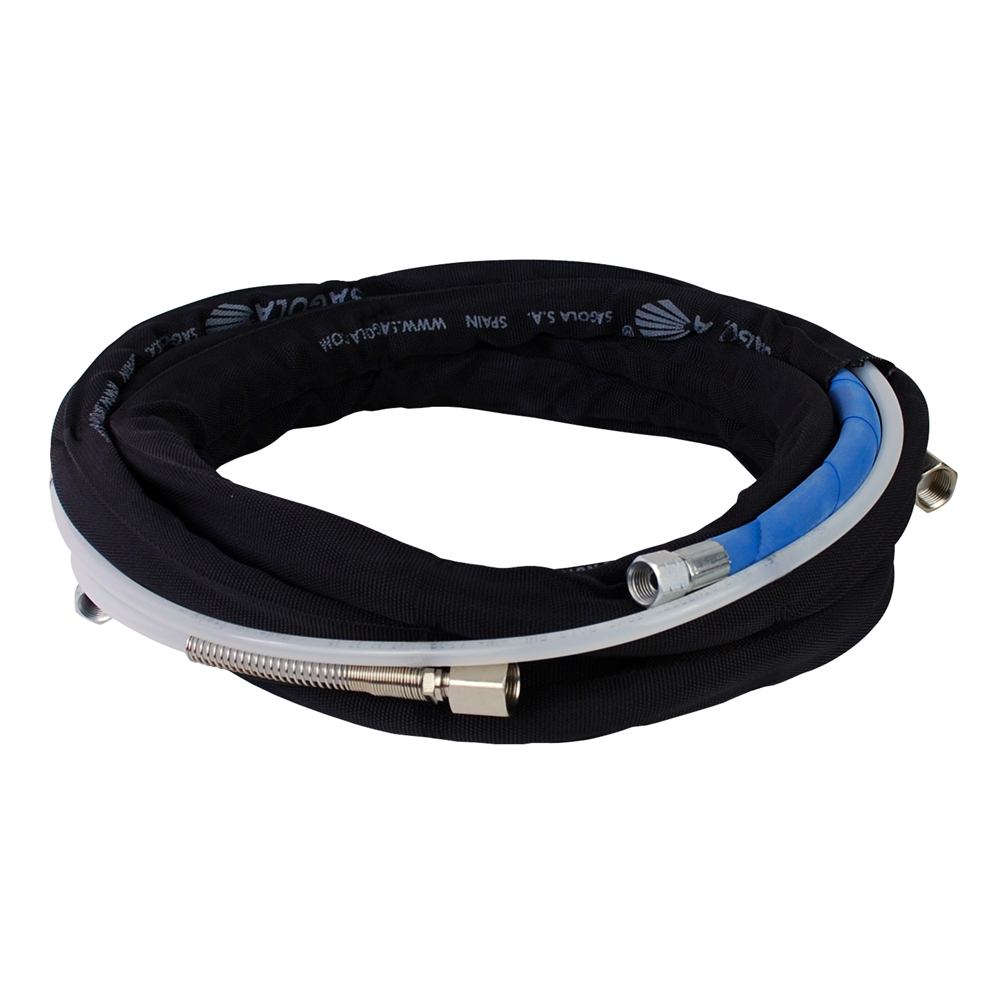 SAGOLA 56414041 — комплект двойного шланга для систем воздушного распыления. Внешний кожух защищает оба канала (воздушный и материальный) от повреждений и спутывания. Готовое решение с фиттингами обеспечивает удобство подключения и стабильную работу оборудования.