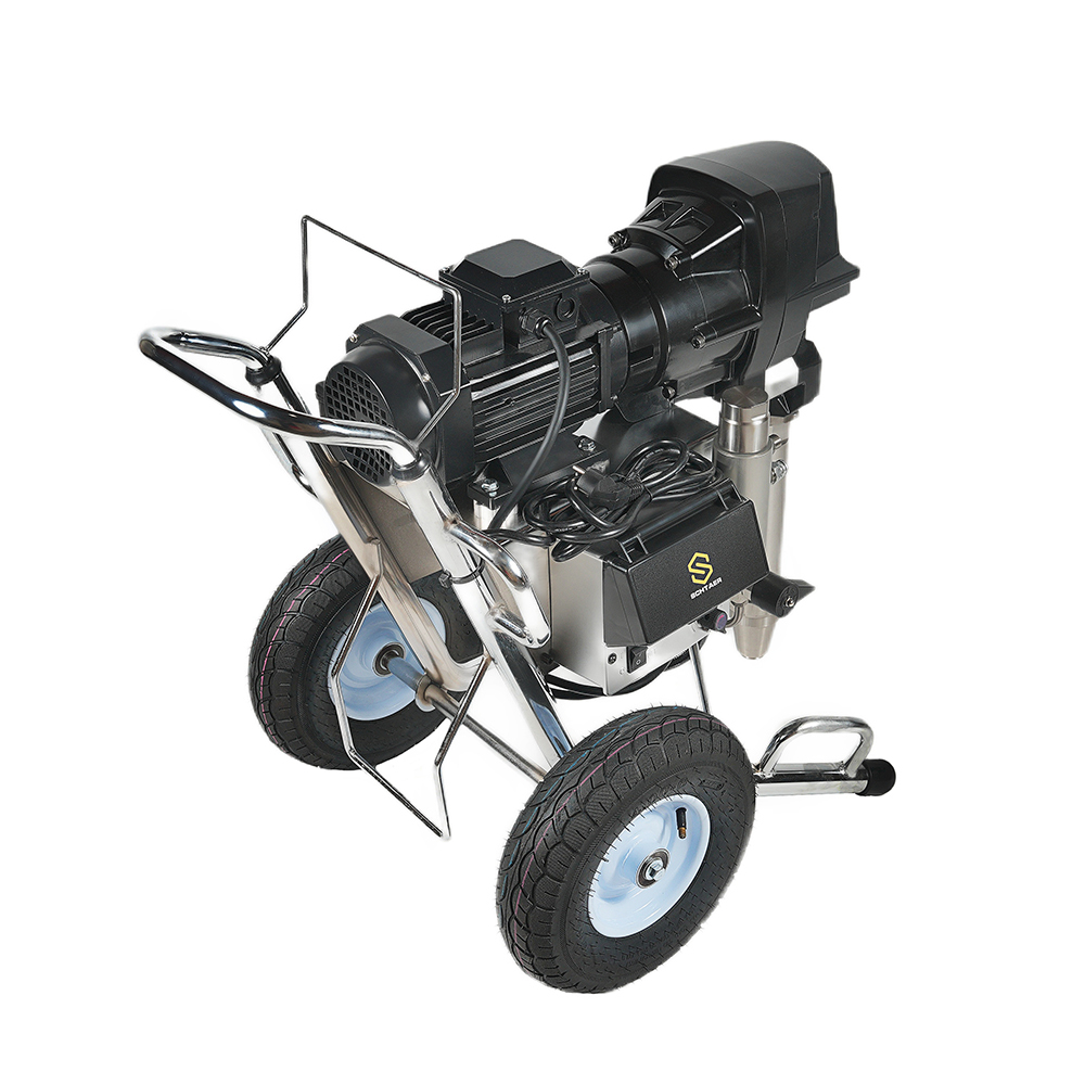— Производительность насоса — до 10 л/мин. Идеально подходит для окраски больших площадей, таких как фасады, ангары, склады, бетонные и металлические конструкции.