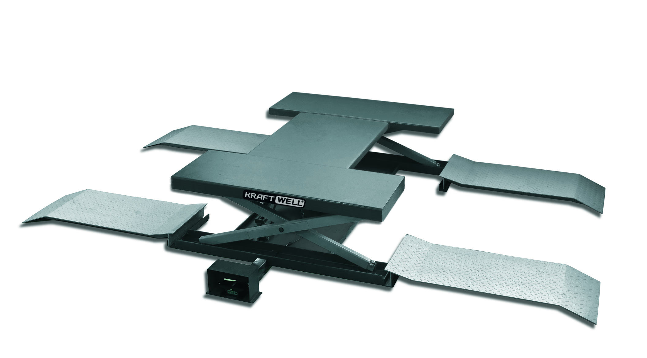 - Подъемник ножничный KraftWell FORBI 2.5G, г/п 2500 кг, серый, пневматический, для шиномонтажа, комплект поворотных лап, напольный, длина платформ 1320 мм, высота подъема 500 мм
