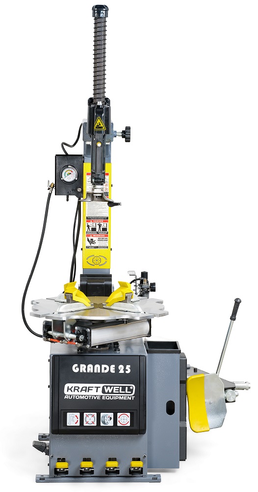 KraftWell GRANDE 25/220 (KRW25A/220) – это шиномонтажный автоматический станок для дисков диаметром 10-26″, применяемый при выполнении работ со стальными и легкосплавными дисками автотранспорта как в специализированных шинных центрах, так и в условиях небольшого пункта шиномонтажа с большой пропускной способностью.