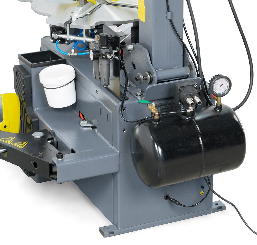 - Мощный и надежный пневмоцилиндр отбортовщика с отжимным усилием 2500кг справится с любым типом шин, в том числе с низкопрофильными