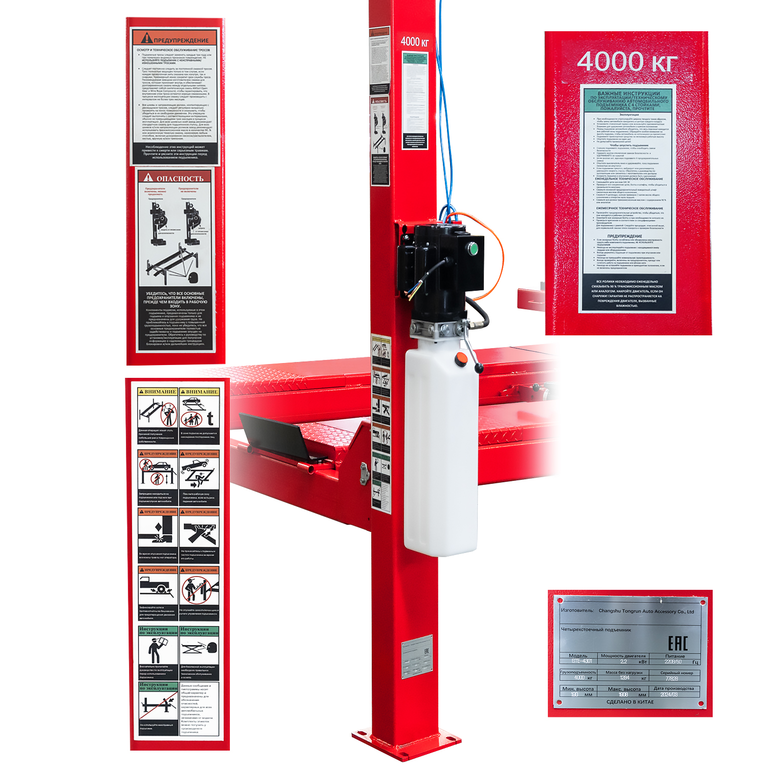 - Подъемник электрогидравлический 4т 190-1900мм 4-х стоечный 380В (ручной спуск) GTE GTE-4300