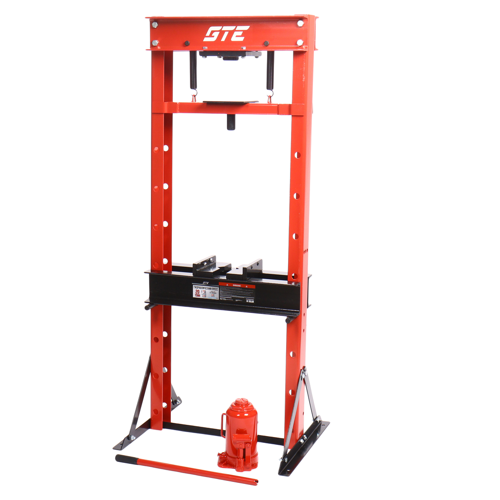 Гидравлический напольный пресс GTE домкратного типа GTE-HPB13020 обеспечивает усилие прижима 20 тонн. Используется в автосервисах, СТО и производстве для запрессовки деталей различных размеров, выпрессовки втулок, снятия и установки подшипников, гибки металла.