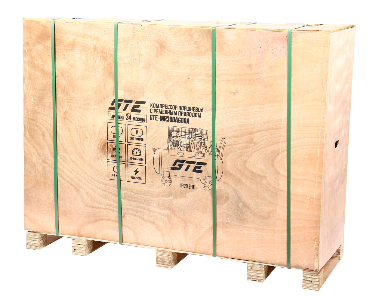 - Компрессор пневматический 380В 5.5кВт 8атм. 600л/мин. ресивер-300л поршн. ремен. одноступенчатый GTE GTE-MR300A600A