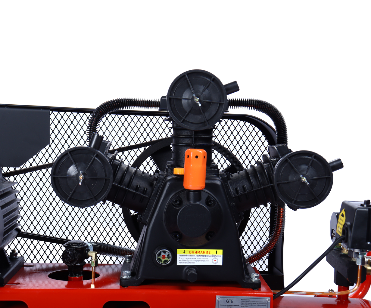 Поршневой компрессор GTE-MR4100400A с ременным приводом — надежное оборудование, предназначенное для профессионального использования в автосервисах, производственных цехах и строительных объектах, обеспечивает стабильную подачу воздуха для пневмоинструментов и других задач, требующих высокого давления.