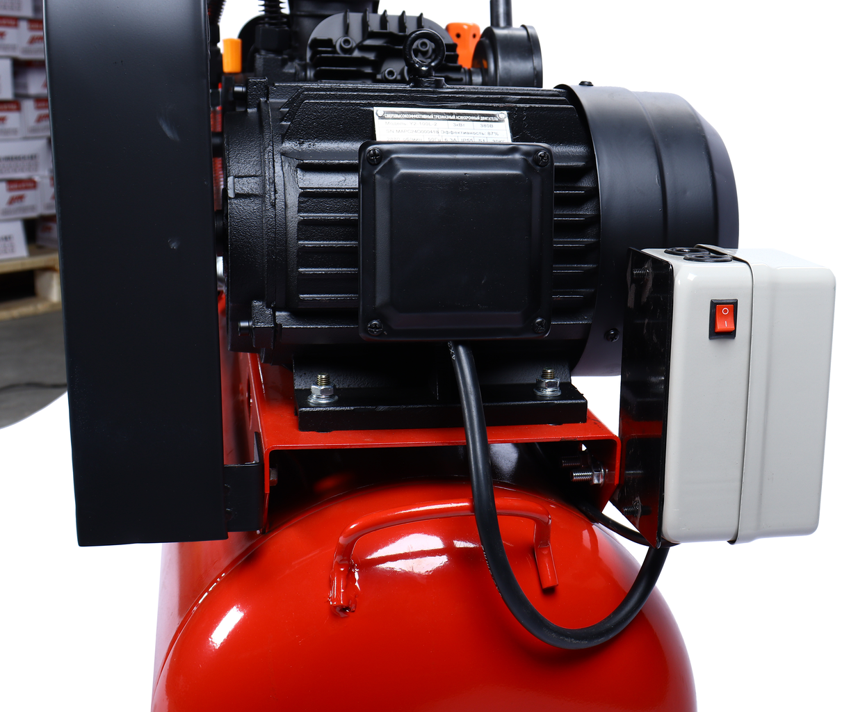 Ресивер объемом 100 литров — обеспечивает достаточный запас воздуха для многих задач, позволяя работать без частых отключений.