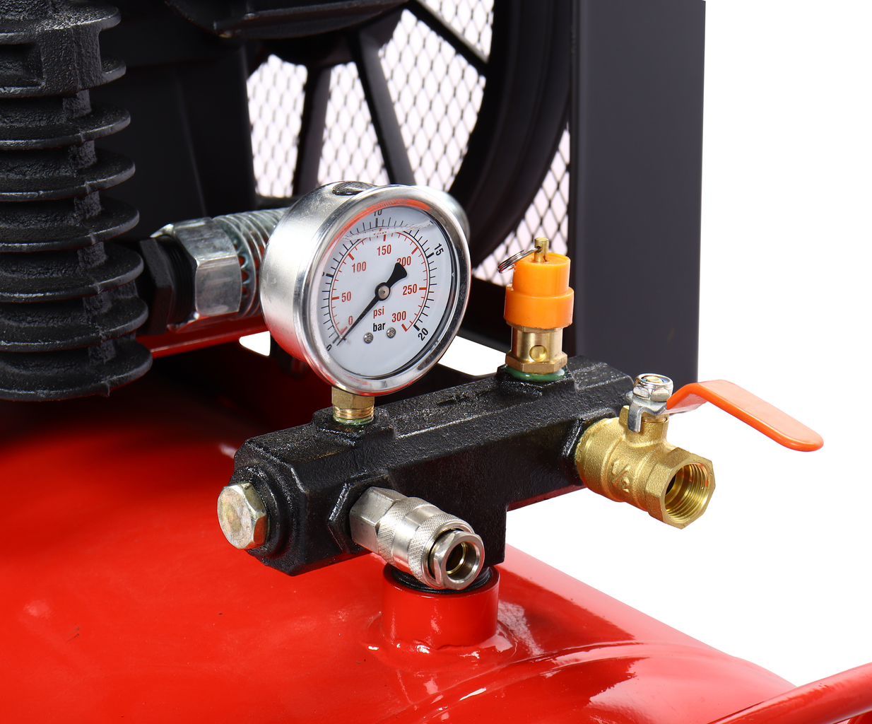 Ресивер объемом 300 литров — обеспечивает достаточный запас воздуха для многих задач, позволяя работать без частых отключений.