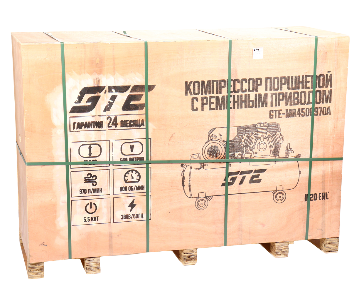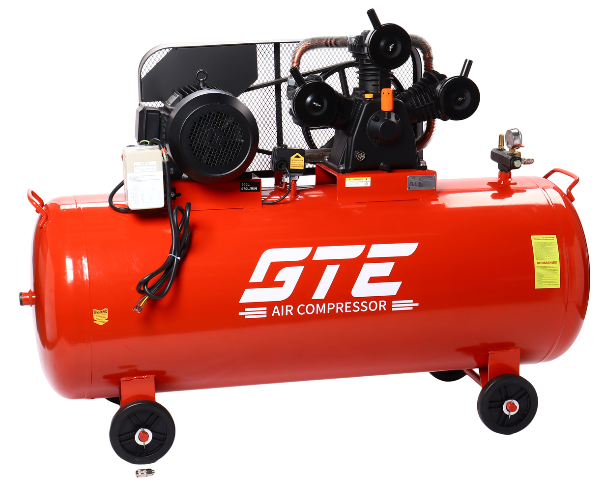 Поршневой компрессор GTE-MR4500970A с ременным приводом — надежное оборудование, предназначенное для профессионального использования в автосервисах, производственных цехах и строительных объектах, обеспечивает стабильную подачу воздуха для пневмоинструментов и других задач, требующих высокого давления.