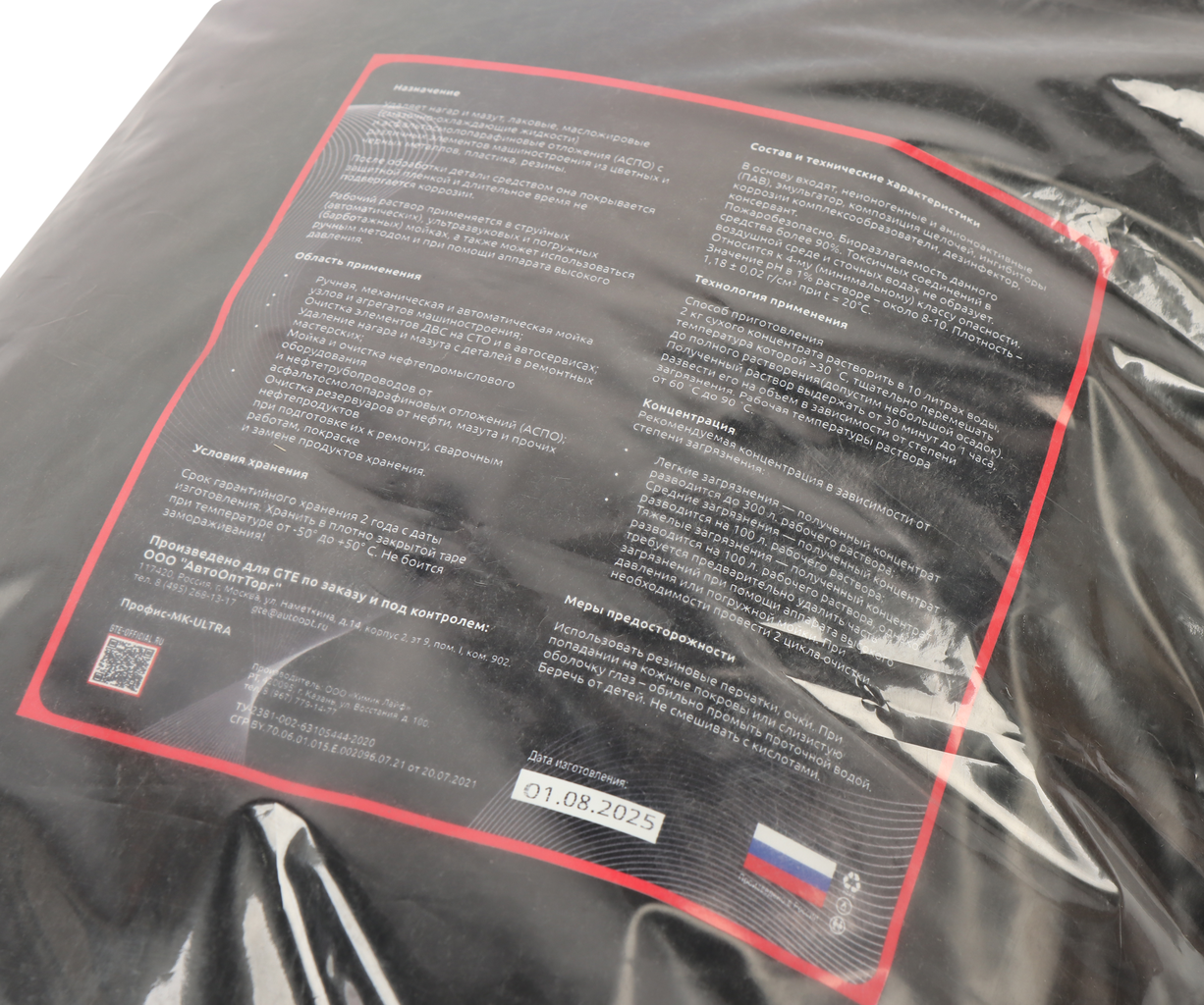 Удаляет нагар и мазут, лаковые, масложировые (смазочно-охлаждающие жидкости) и асфальтосмолопарафиновые отложения (АСПО) с различных элементов машиностроения из цветных и черных металлов, пластика, резины.