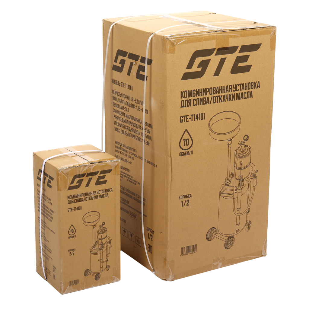 Комбинированная пневматическая установка для слива и откачки масла емкостью бака 70 литров GTE-T14101. Подходит для быстрой замены моторного или трансмиссионного масла любого автомобиля.