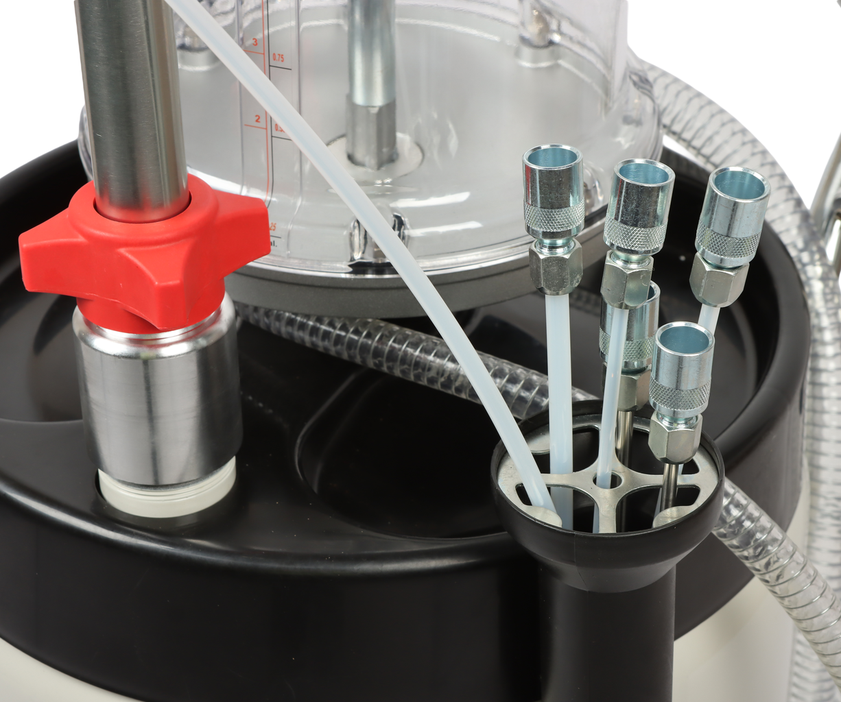 Замена масла производится как самотеком с использованием маслосборника (15 литров) с регулируемой высотой, установленного на боковой опоре, так и путем откачивания при помощи прилагаемых щупов, идущих в комплекте.