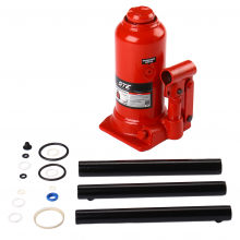 Гидравлический бутылочный домкрат GTE-TH950001B — высококачественное силовое оборудование для выполнения подъемных работ при диагностике и ремонте автомобиля в автосервисах, шиномонтажах и автотранспортных предприятиях. Гидравлический домкрат с ручным приводом способен поднимать различные виды грузов и транспортных средств до 50 тонн, обеспечивая надежную и безопасную процедуру подъема.