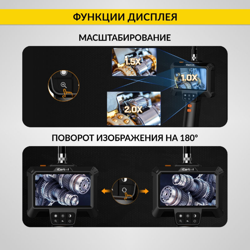 iCartool IC-VC83 – это промышленный видеоэндоскоп со съемным зондом, применяемый для визуального контроля скрытых полостей узлов автомобиля перед техническим обслуживанием, а также после установки автотранспорта на подъемник для осмотра ходовой системы.