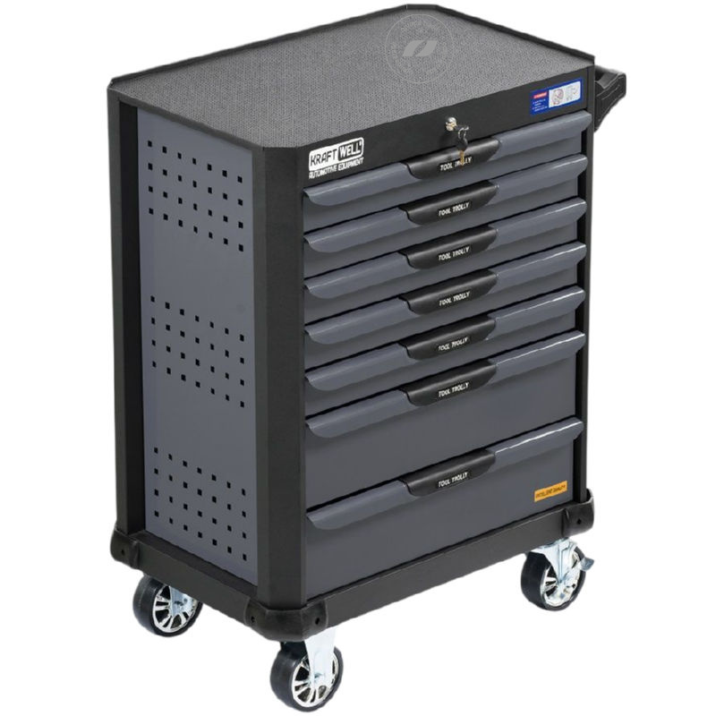 - Инструментальная тележка KraftWell KRW-T7D оснащена 7-ю выдвижными ящиками