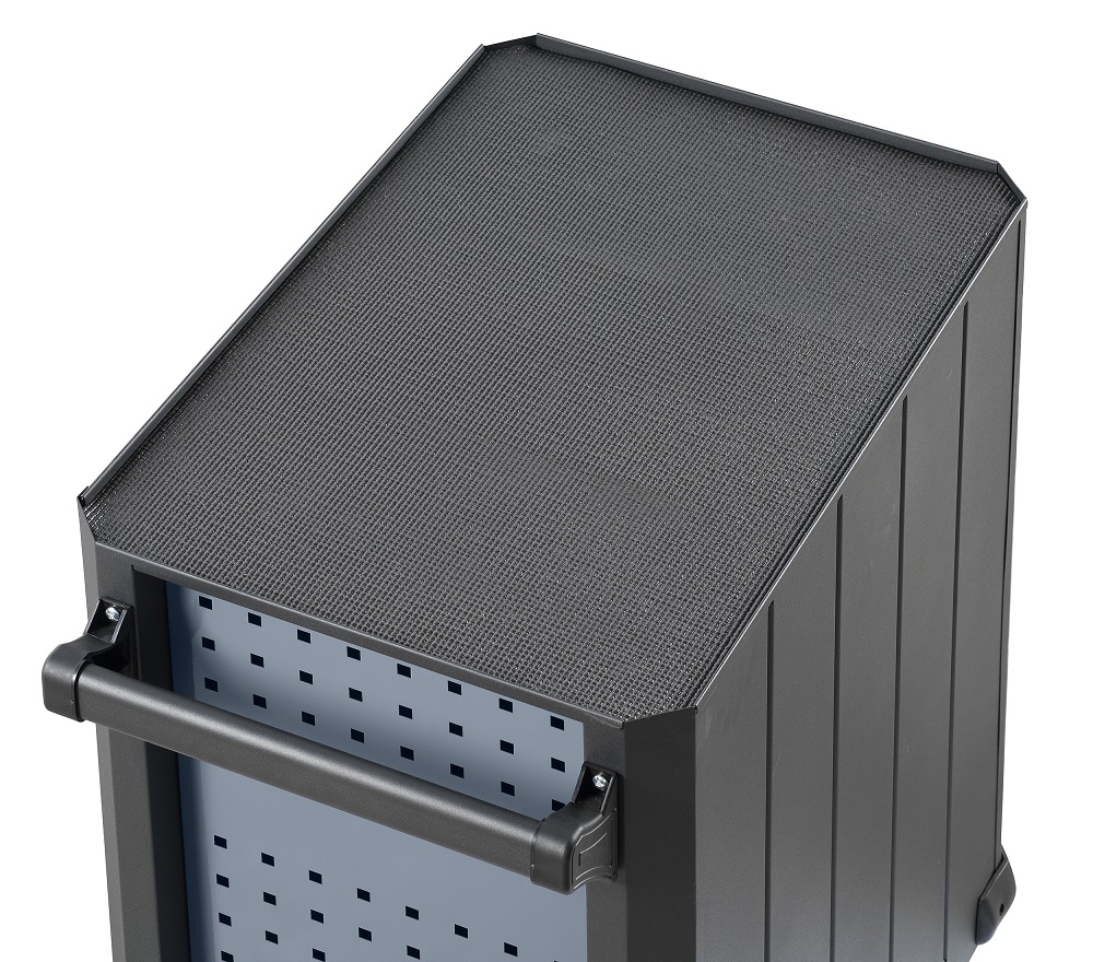 - Телескопические направляющие ящиков имеют механизм фиксации, не позволяющий самопроизвольно открыться ящику, даже если внутри находится инструмент, а также доводчиком, обеспечивающим плавное закрытие ящика