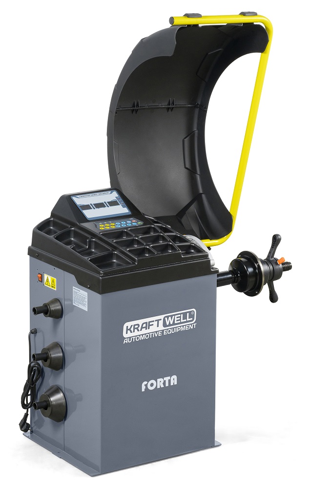 - Балансировочный станок KraftWell KRW242, серый, полуавтомат, цифровой LED дисплей, для дисков 10-24″, вал 36 мм