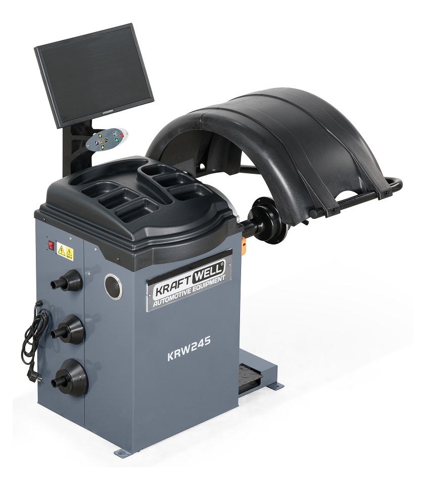 KraftWell KRW245 – это балансировочный станок с автоматическим вводом 3-х параметров, ЖК монитором на 19 дюймов и валом на 40 мм, применяемый при выполнении шиномонтажных работ с дисками диаметром 10-24 и максимальным весом колес легковых автомобилей, внедорожников, а также легких грузовиков и мотоциклов до 65 кг в условиях шинных центров, небольшых пунктов шиномонтажа и автосервисов.