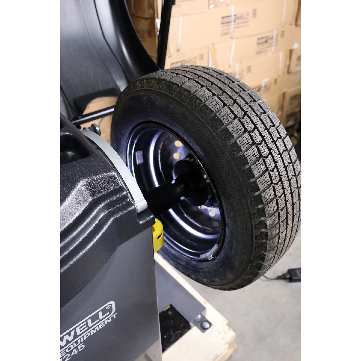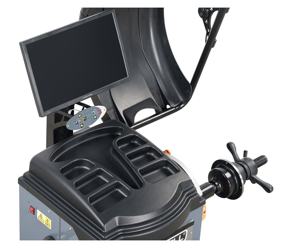 - Балансировочный станок KraftWell KRW245, серый, автомат, ЖК монитор 19″, УЗ датчик, лазерный указатель, подсветка, для дисков 10-24″, вал 40 мм