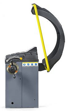 - За демонтаж и монтаж шины на диск отвечает монтажная консоль, отводящаяся вручную в сторону, установленная на колонне, жестко зафиксированной на корпусе станка, что существенно экономит пространство, позволяя устанавливать станок почти вплотную к стене
