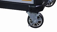 - Тележка оснащена четырьмя колесами для передвижения по ровной горизонтальной поверхности. Два колеса – поворотные со стопорами