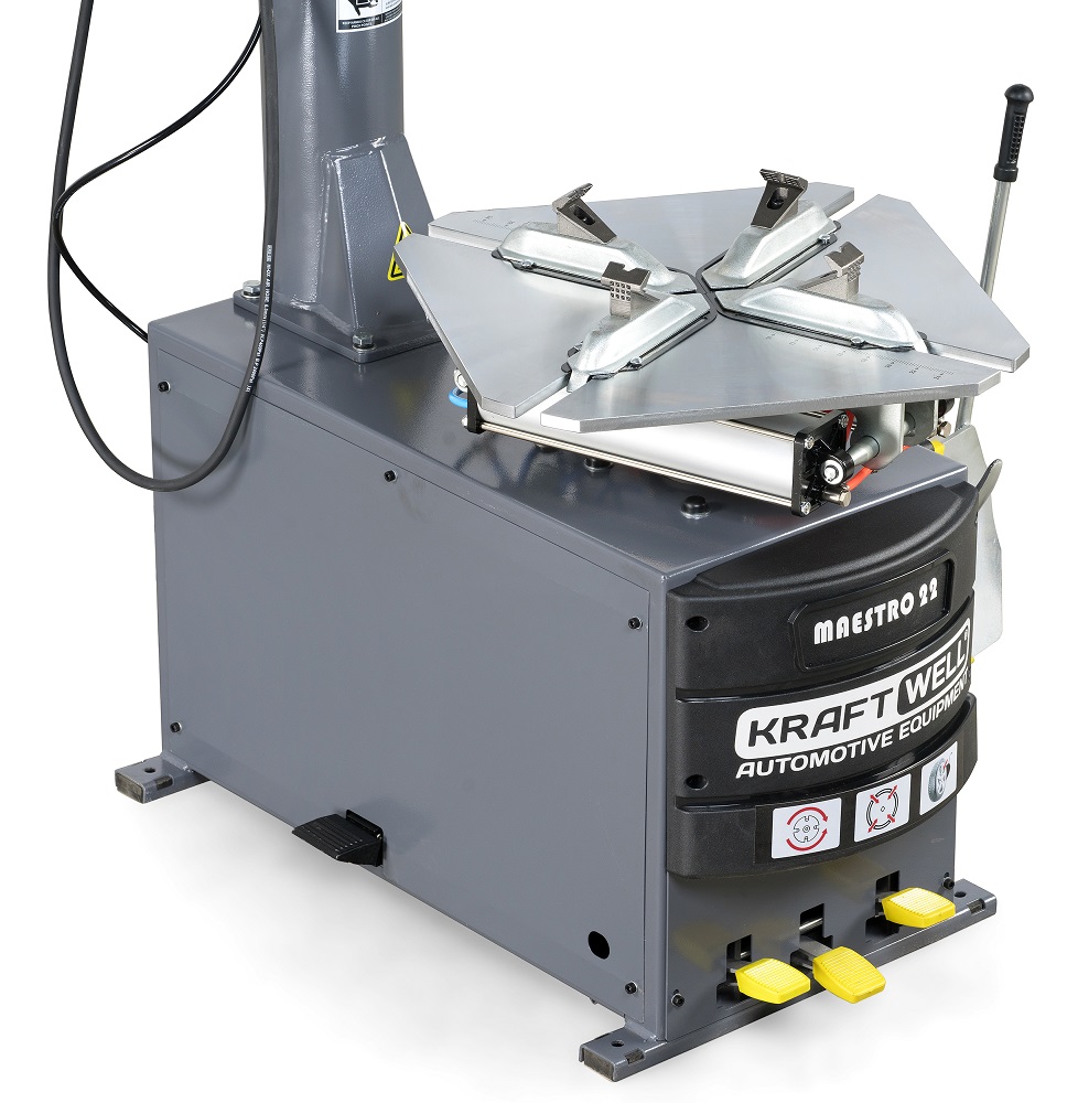 - Шиномонтажный станок KraftWell MAESTRO 22, KRW22, серый, полуавтомат, 380 В, односкоростной, для дисков 10-24, поворотная консоль