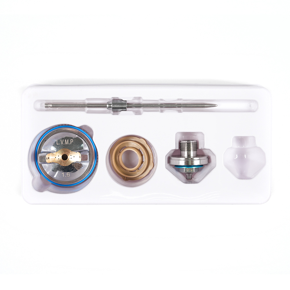 В комплекте — игла, сопло и воздушная головка, созданные для стабильного и мощного распыла. Быстрая замена деталей обеспечивает минимальные простои и максимальную отдачу при обработке сложных материалов.