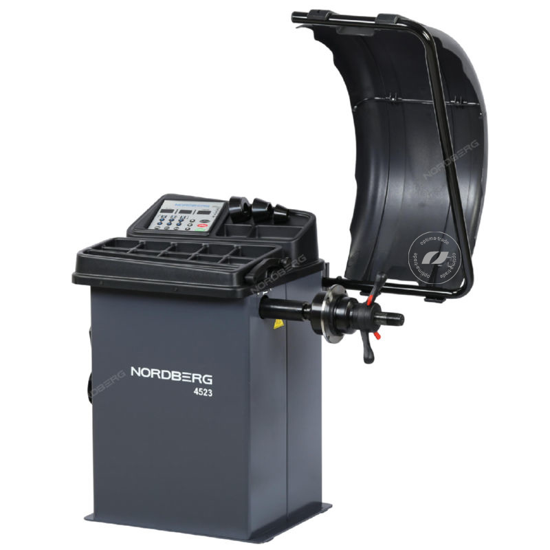 Nordberg 4523(G) – это серый балансировочный станок с полуавтоматическим вводом параметров для дисков размером 10-24 дюймов, применяемый при работах с колесами весом до 65 кг в условиях СТО, а так же небольших шиномонтажных пунктов.