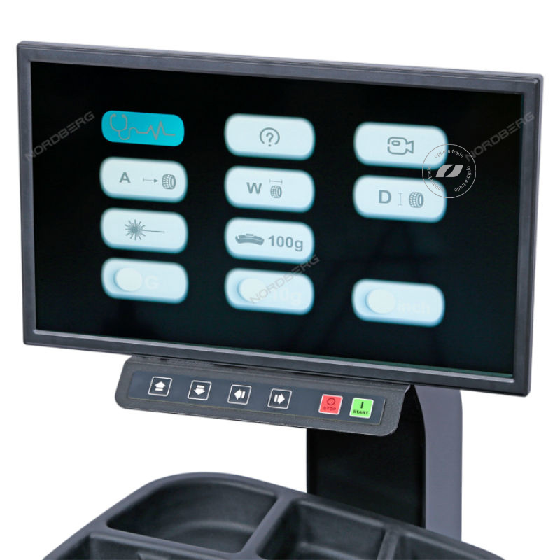 - Балансировочный станок Nordberg 4523PA1(G), серый, автомат, для дисков 10-24″, ЛУ, УЗ, цифровой монитор, ОС Android, вал 40 мм, автодоворот колеса, электро-тормоз кнопкой, моторежим, USB-разъем
