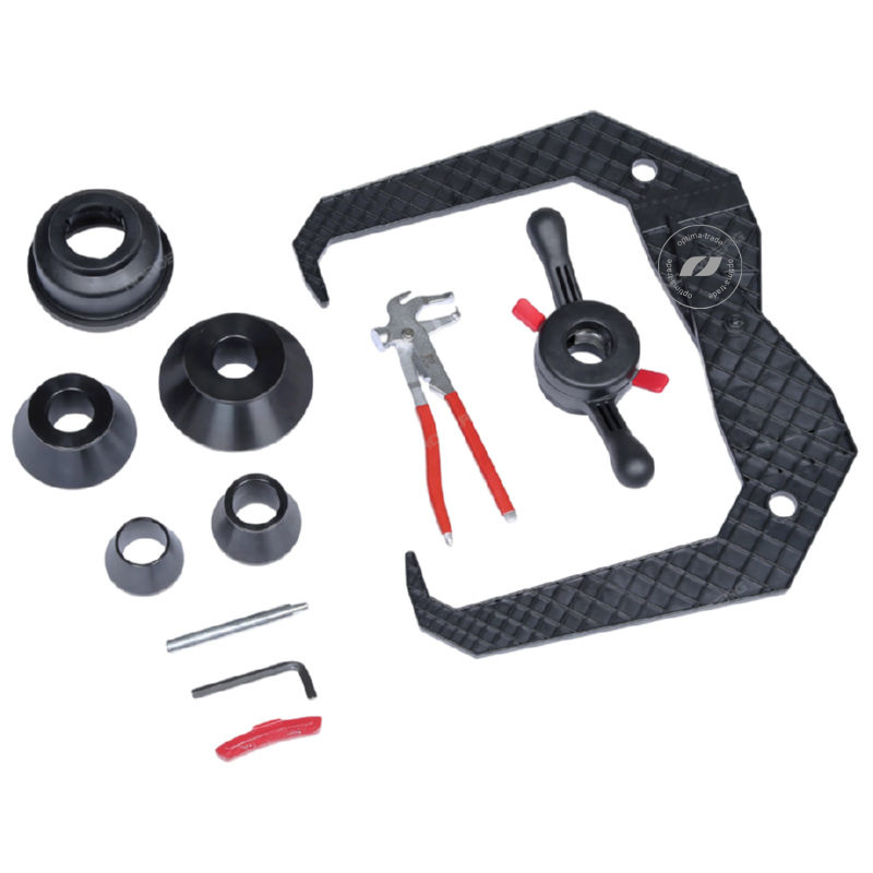 - Дополнительно вы можете приобрести расходные материалы для шиномонтажа, такие как балансировочные грузики, химическую продукцию, вентили для бескамерных шин и инструмент с аксессуарами для проведения работ на станке