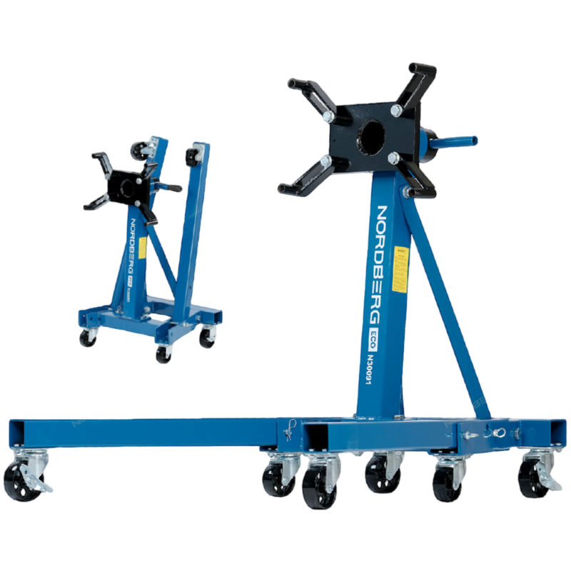 - Кантователь двигателя Nordberg N30091, синий, складной, до 900 кг, мобильный, регулируемые кронштейны 4 шт, вращение на 360°, н-образное основание