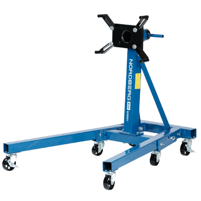 Кантователь двигателя Nordberg N30091, синий, складной, до 900 кг, мобильный, регулируемые кронштейны 4 шт, вращение на 360°, н-образное основание