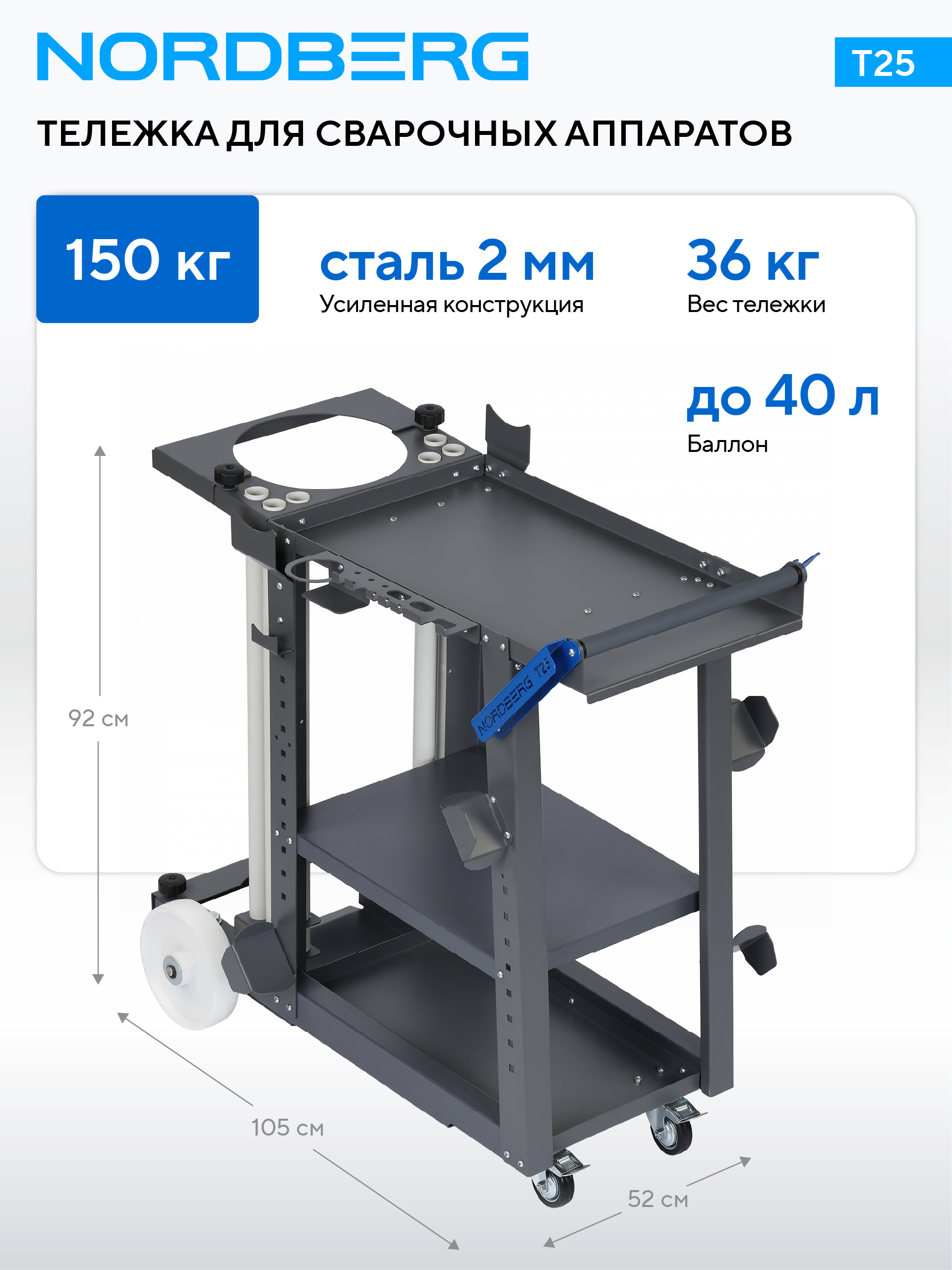 - Тележка для сварочного аппарата NORDBERG T25, нагрузка до 150 кг, сталь 2мм