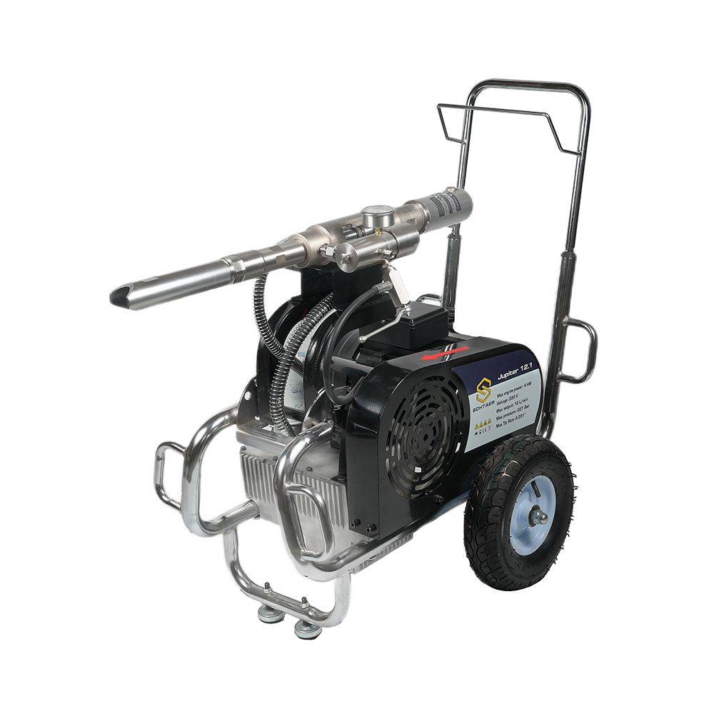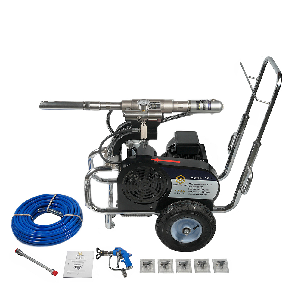 Schtaer Jupiter 12 — поршневой безвоздушный окрасочный аппарат. Он подходит для распыления высоковязких красок, огнезащитных составов, гидроизоляционных материалов, мастик, антикоррозионных красок, цинконаполненных материалов, шпатлевок, грунтов и других материалов, пригодных для нанесения через поршневой безвоздушный окрасочный агрегат. Применяется на строительных площадках при покраске стен, потолков, фасадов, металлических конструкций, крыш, бассейнов, куполов, металлических балок, заборов, мостов, тоннелей, а также для нанесения дорожной разметки при условии использовании дополнительного оборудования.