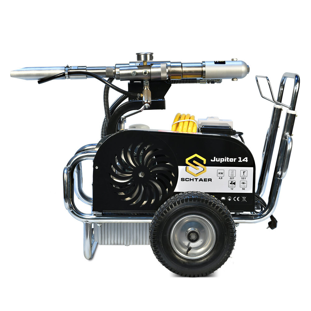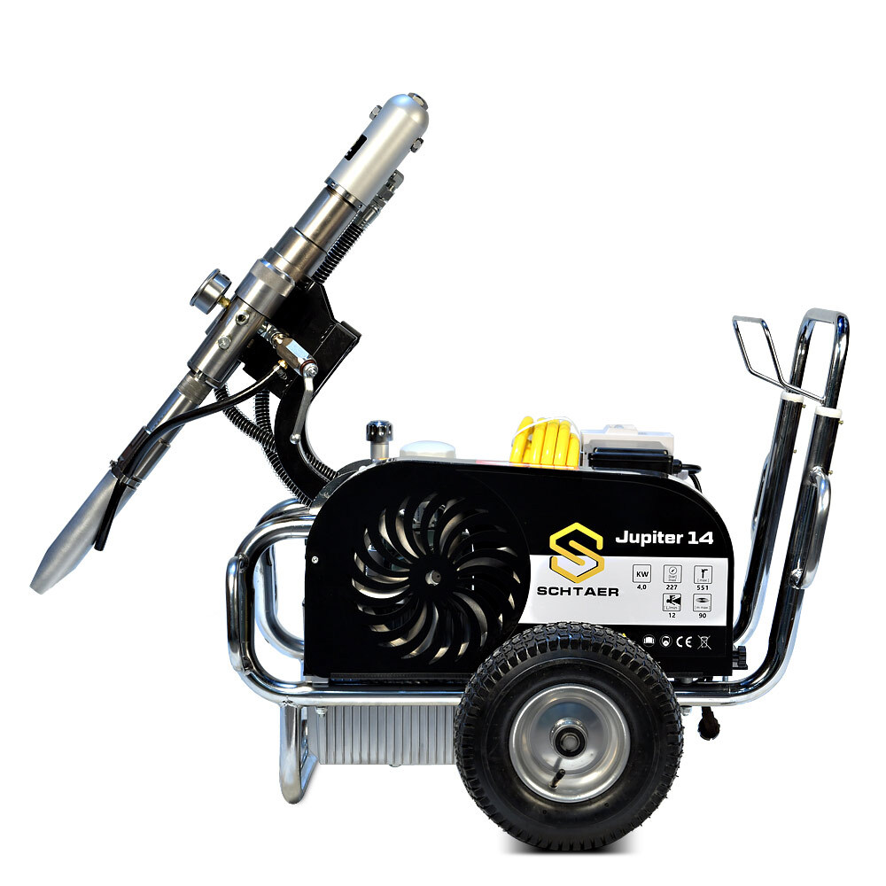 Безвоздушный окрасочный аппарат Schtaer Jupiter 14 используют как в быту, так и на больших стройках. Аппарат надежный и простой в использовании при окраске стен, потолков, фасадов зданий, крыш и т. д. Оборудование подходит для распыления составов с высокой степенью вязкости при работе с антикоррозийными красками, цинкосодержащими составами, эмалями, мастиками, грунтовками, огнезащитными покрытиями. Schtaer Jupiter используют для нанесения дорожной разметки при использовании дополнительного оборудования.