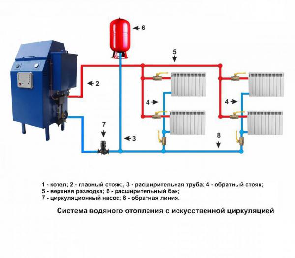 - Подключается к системе отопления, имеющую в составе (не входит в базовую комплектацию): циркуляционный насос, радиаторы, расширительный бак.