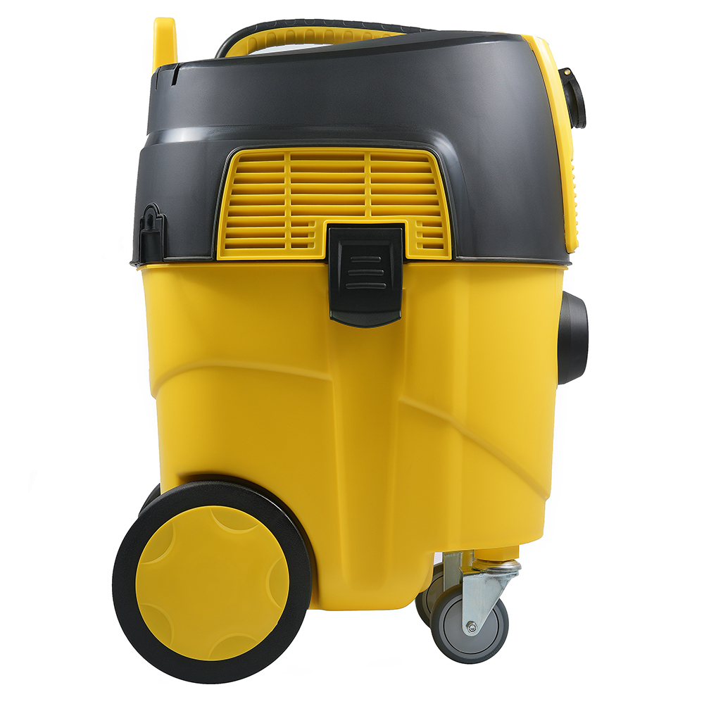 Пылесос оснащён розеткой для подключения электроинструмента с допустимой нагрузкой до 2000 Вт, что делает его удобным помощником при работе с шлифмашинами, пилами и другим строительным оборудованием. Высокая производительность (до 2000 л/мин) обеспечивает чистоту рабочего пространства и защиту здоровья оператора.