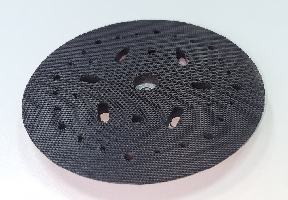 Опора SCH-02-150SD предназначена для надёжной установки абразивных кругов на шлифовальные машины SCH-02-150 (полный аналог тарелки R7303-150). Жёстко-эластичная конструкция обеспечивает ровное прижатие круга к поверхности и стабильную геометрию при шлифовании. Рабочая плоскость с Velcro (липучкой) ускоряет замену расходников, а перфорация тарелки совместима с системами пылеудаления — пыль эффективно отводится из зоны обработки, абразив меньше забивается и служит дольше.