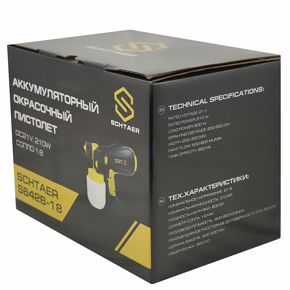 - Schtaer S642B-18 аккумуляторный окрасочный пистолет, DC21V, 120W, сопло 1.8