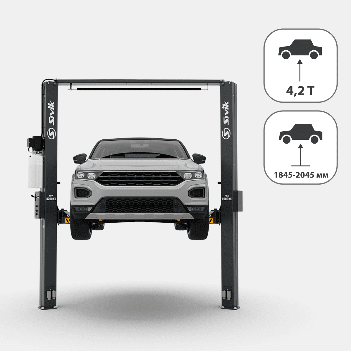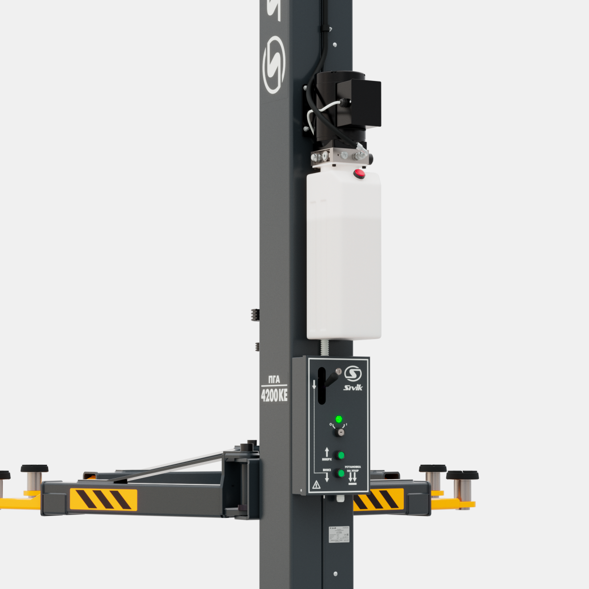Sivik ПГА-4200-КЕ — двухстоечный электрогидравлический подъемник для легковых автомобилей, с верхней синхронизацией, с максимальной грузоподъемностью — 4200 кг.