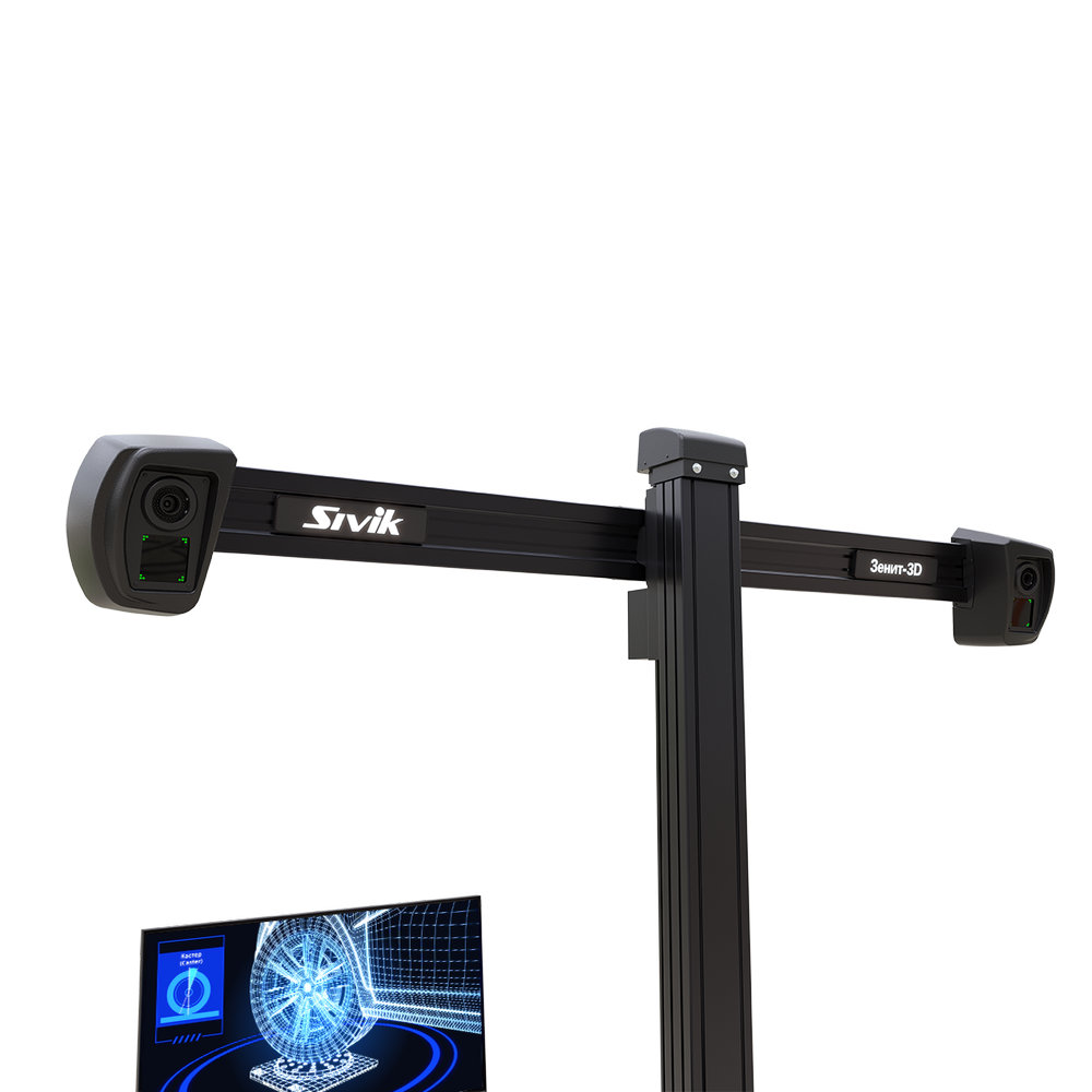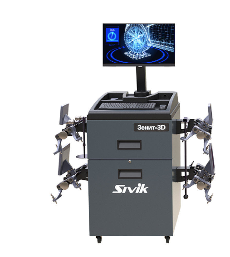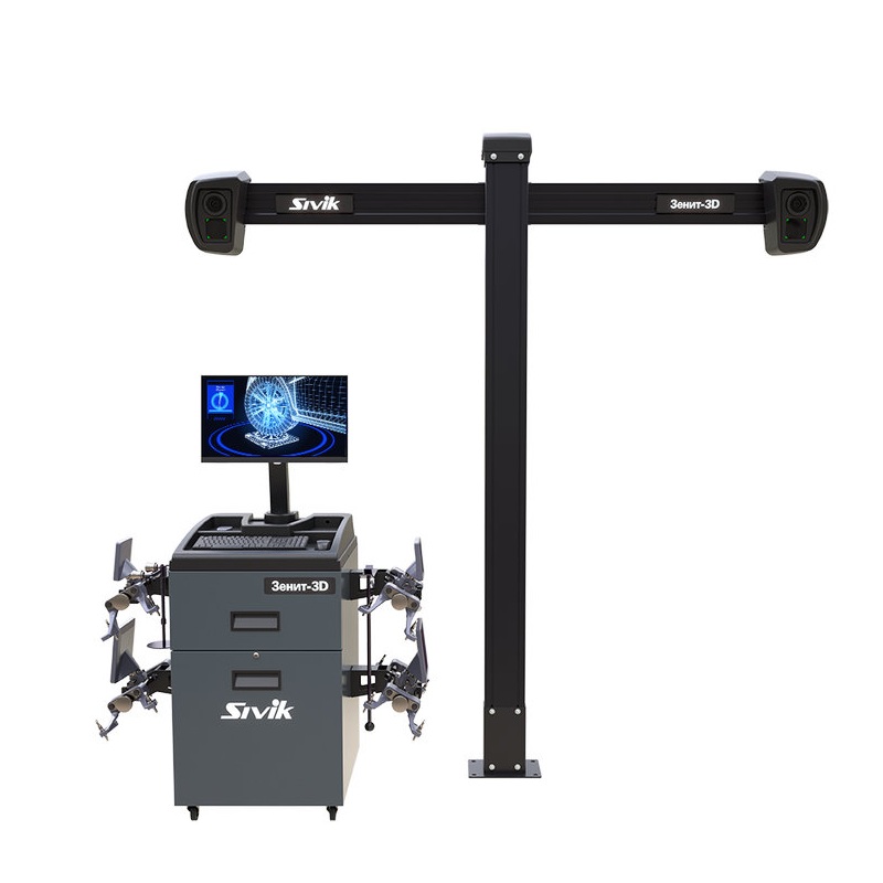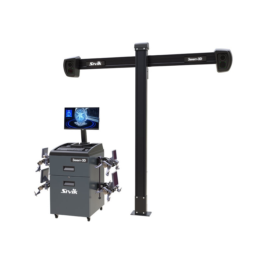 - Двухкамерный стенд сход-развал 3D с отдельным кабинетом кабинетом Sivik Зенит-3D, ТЛ2КС, серый, сенсорный монитор, ОС Windows 11, камеры 2х5 Мп, Т-стойка, диски 12-24″, для ям и подъемников