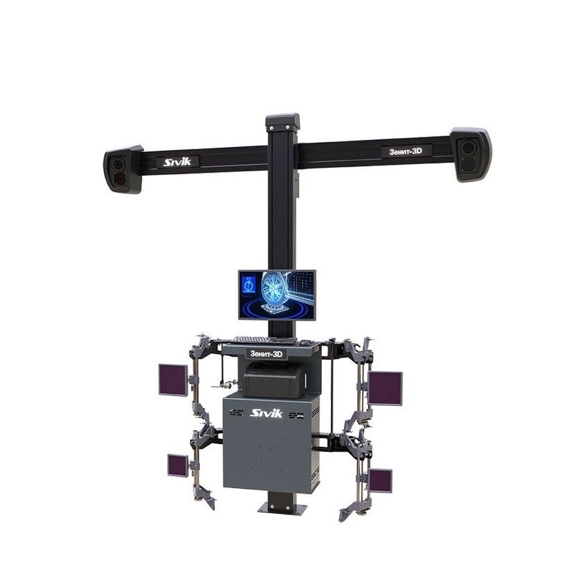 - Двухкамерный стенд сход-развал 3D с подвесным кабинетом Sivik Зенит-3D, ТЛ2ПС, серый, сенсорный монитор, ОС Windows 11, камеры 2х5 Мп, Т-стойка, диски 12-24″, для ям и подъемников