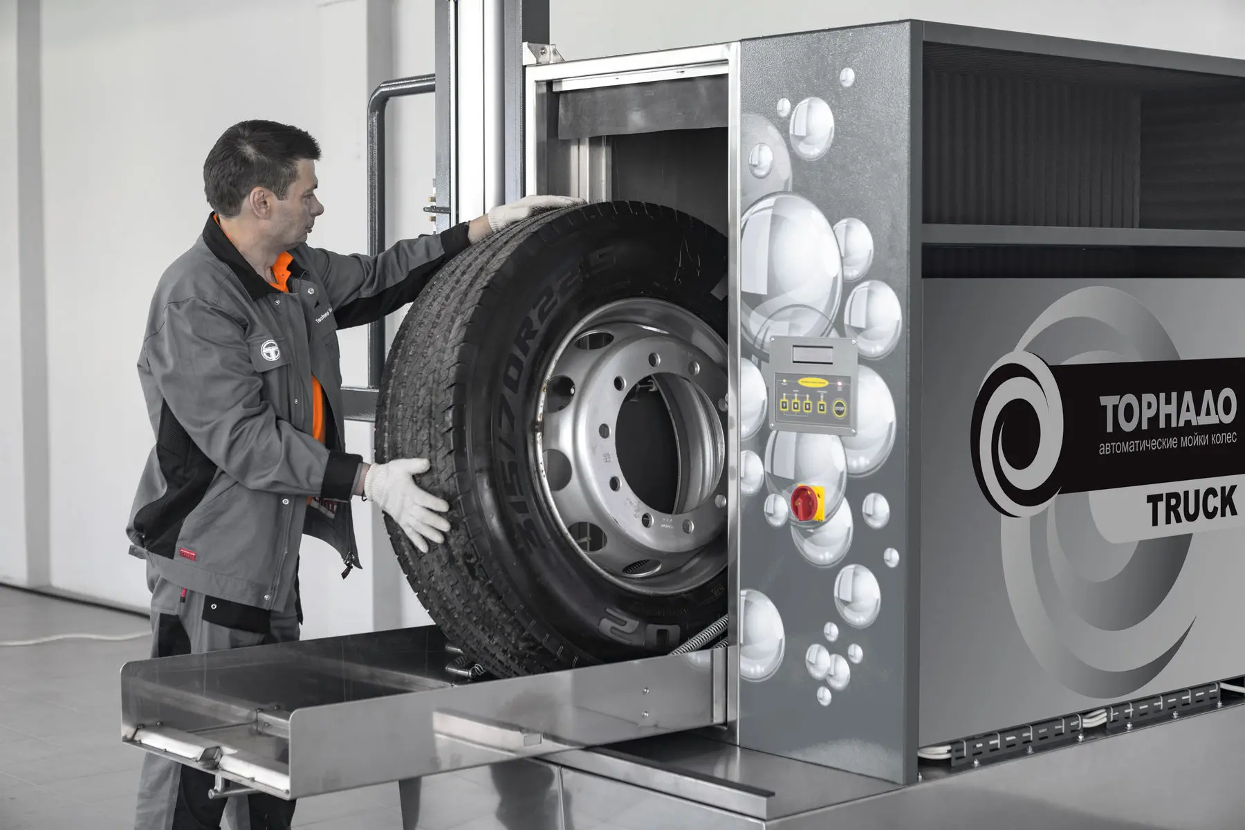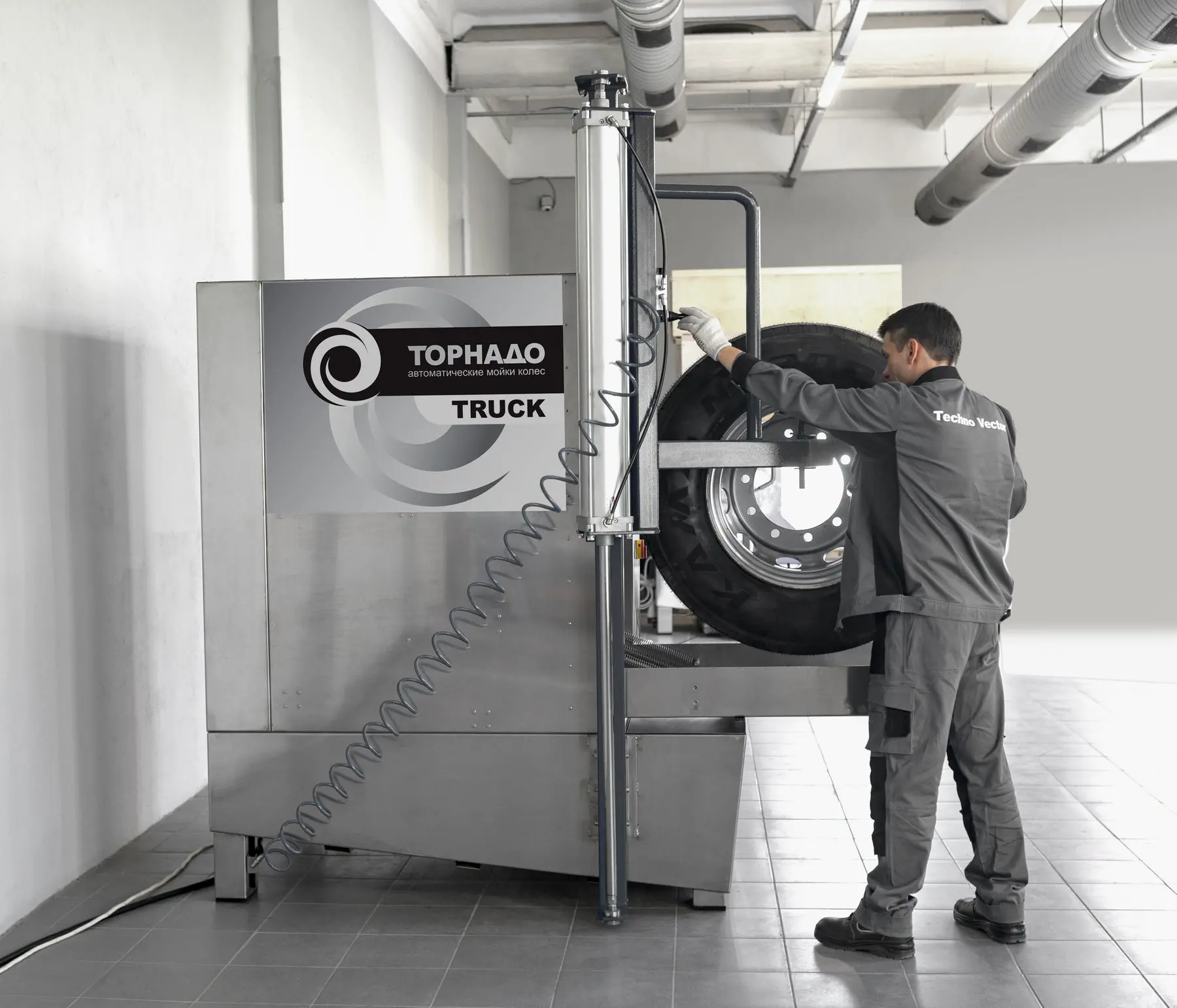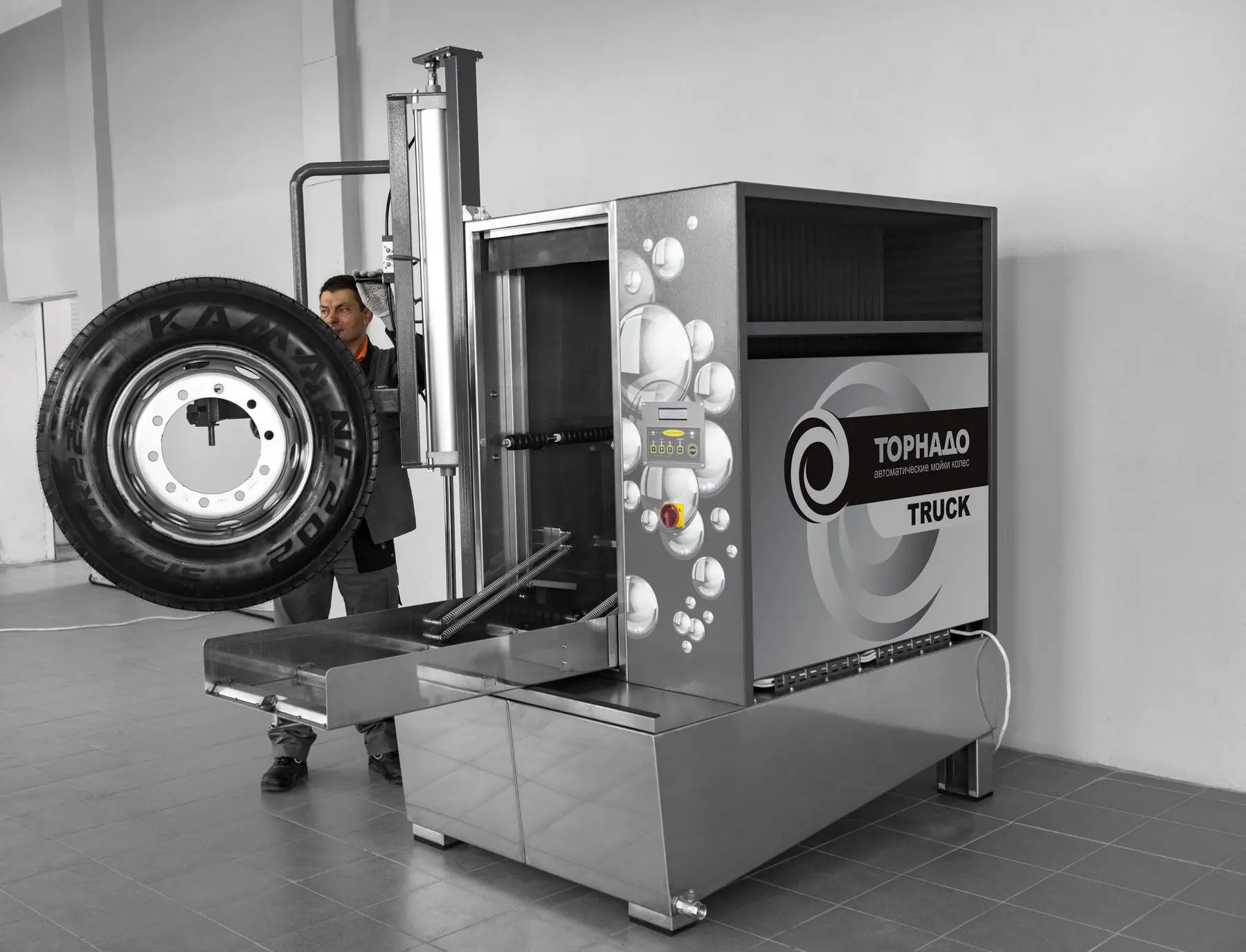 Техно Вектор ТОРНАДО Truck (H) – это автоматическая мойка грузовых колес с нагревом воды, которая предназначена для очистки дисков и покрышек колес автомобилей от грязи водой с пластиковыми гранулами перед шиномонтажными работами.