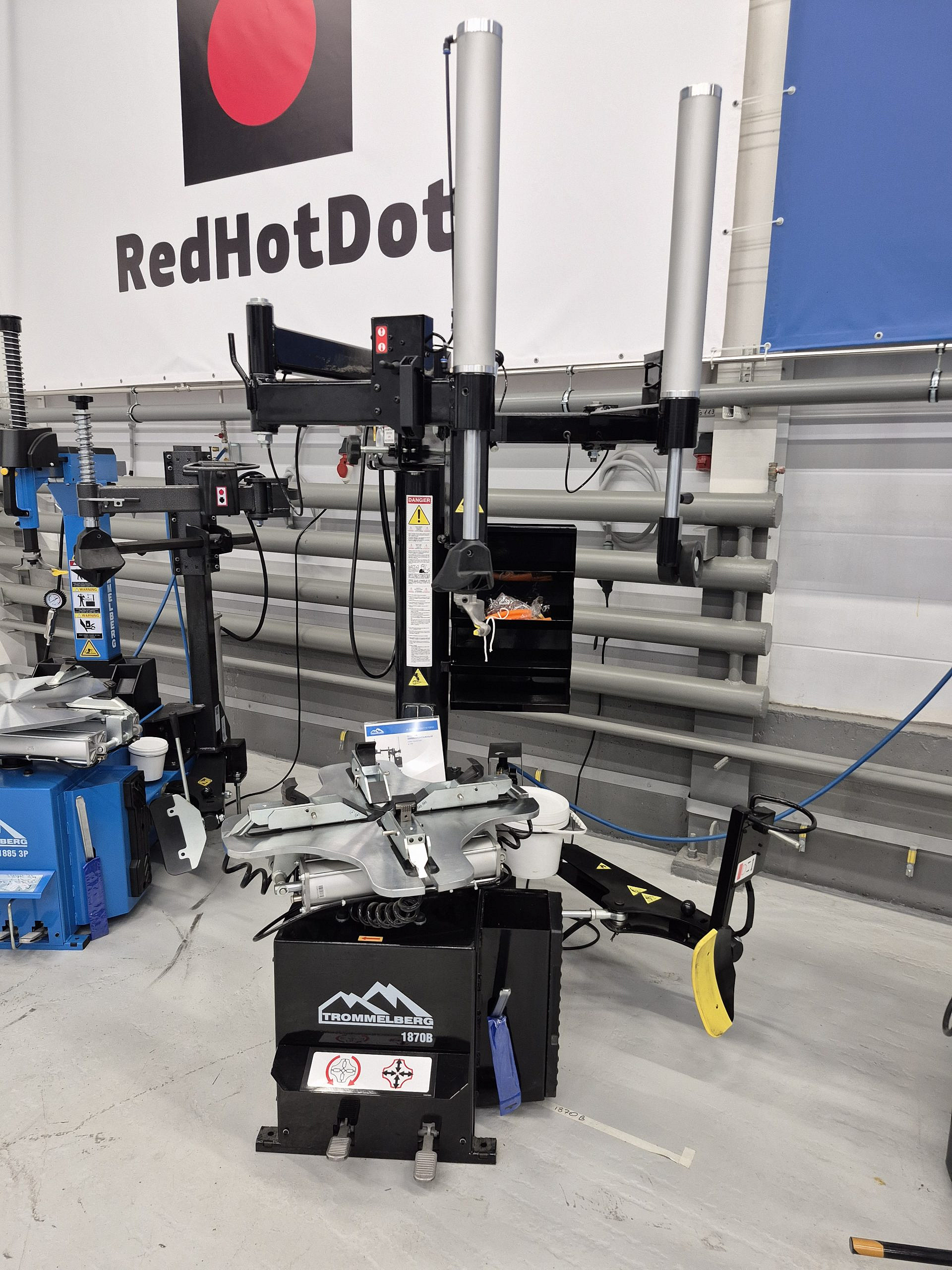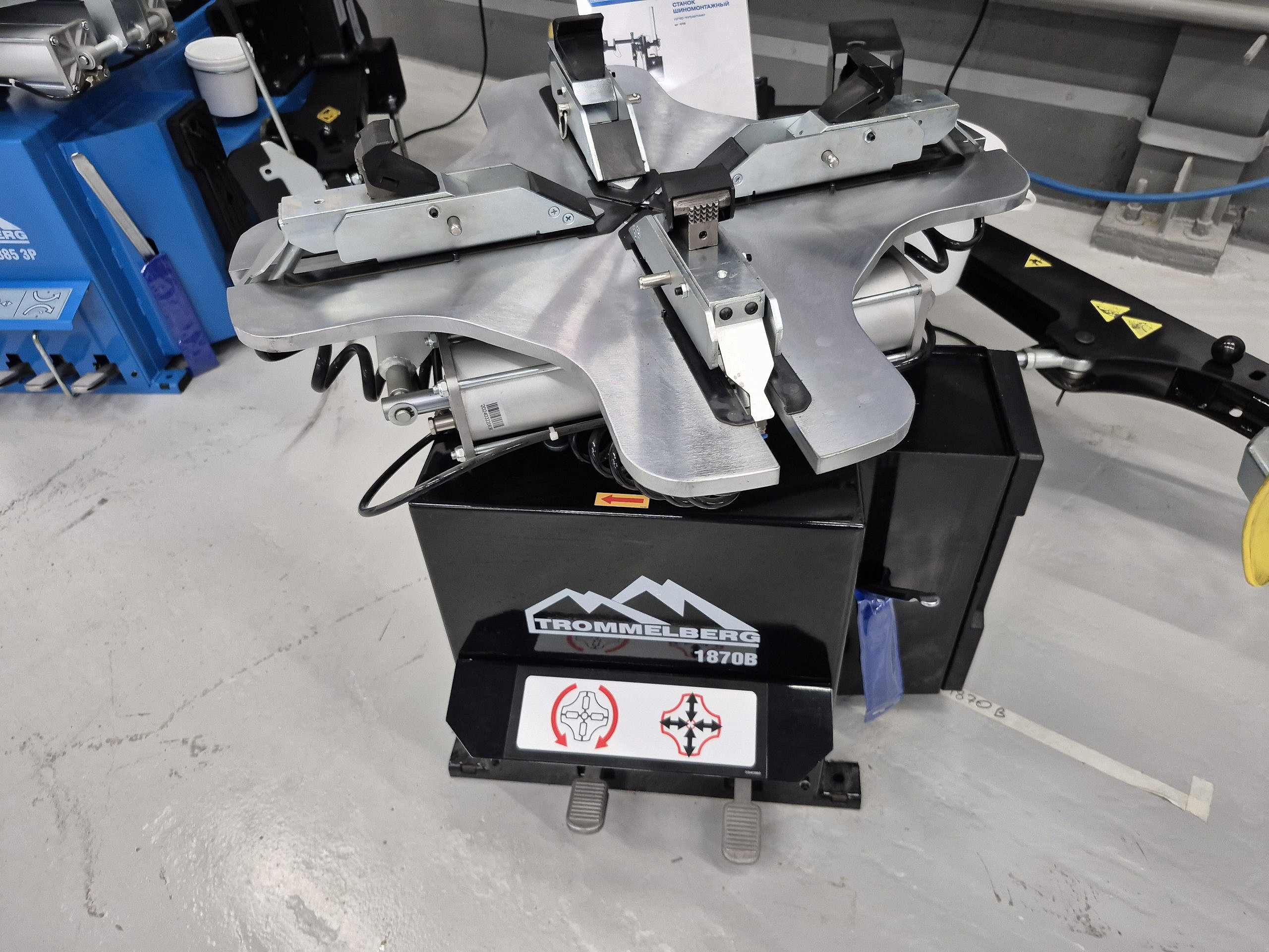 Trommelberg 1870B – это автоматический шиномонтажный станок с взрывной накачкой, применяемый при выполнении работ по обслуживанию колес со стальными и алюминиевыми дисками наиболее распространённых диаметров в условиях шиномонтажных мастерских, автосервисов и СТО.