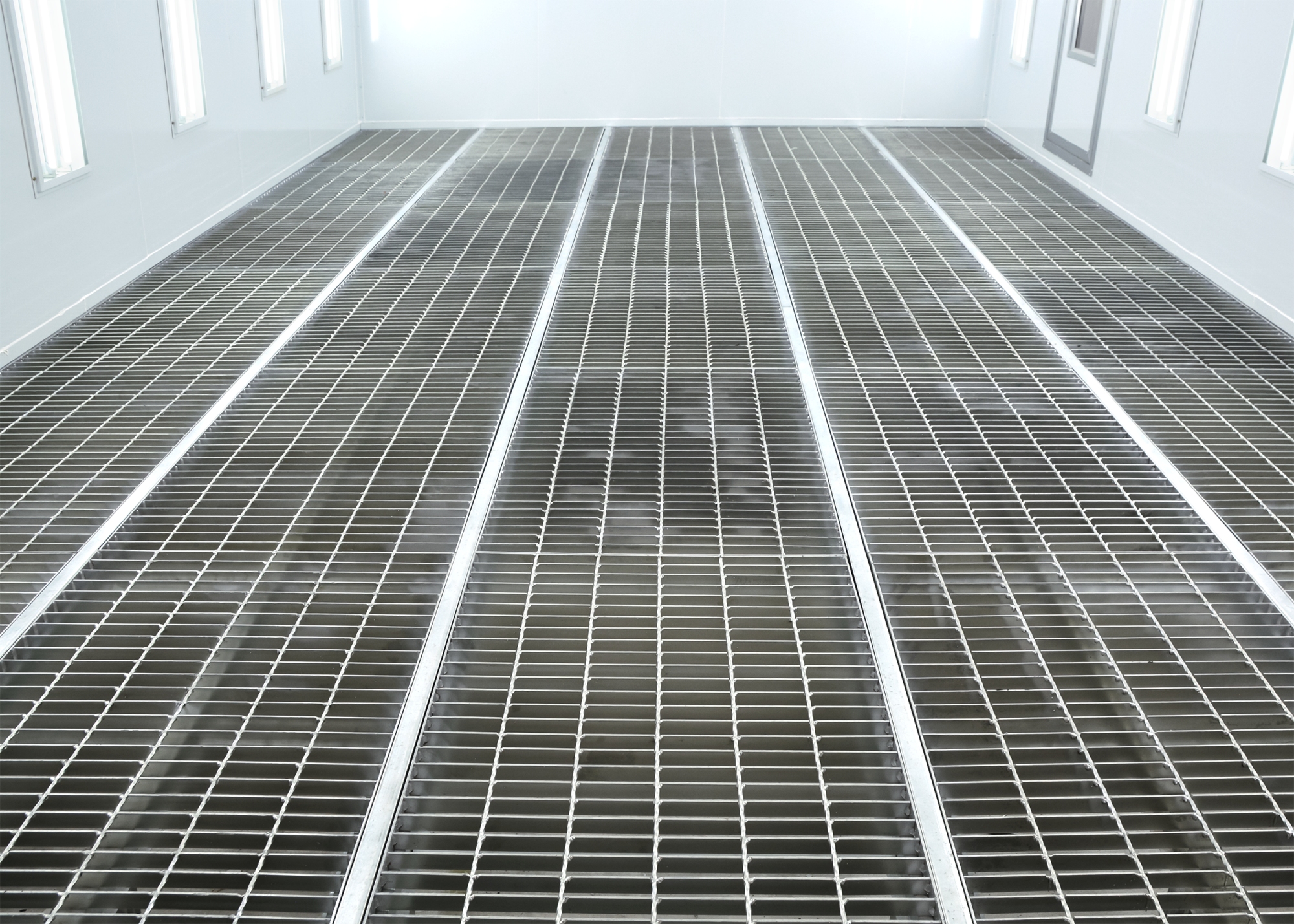 - Полностью решетчатый пол с несущей способностью 500 кг/колесо